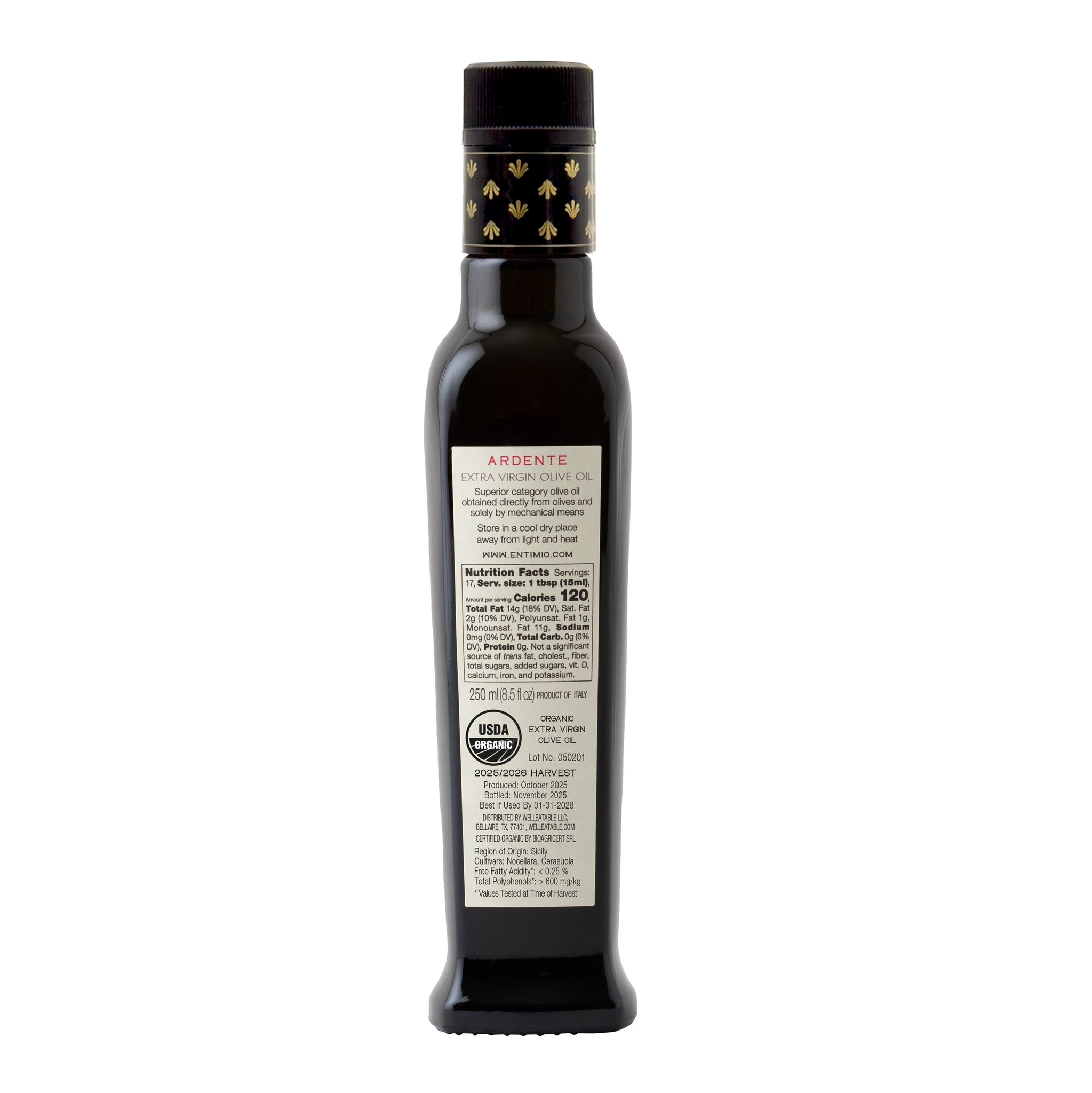 Entimio Ardente | 2025-2026 Early Harvest Organic Extra Virgin Olive Oil from Sicily | 8.5 fl oz